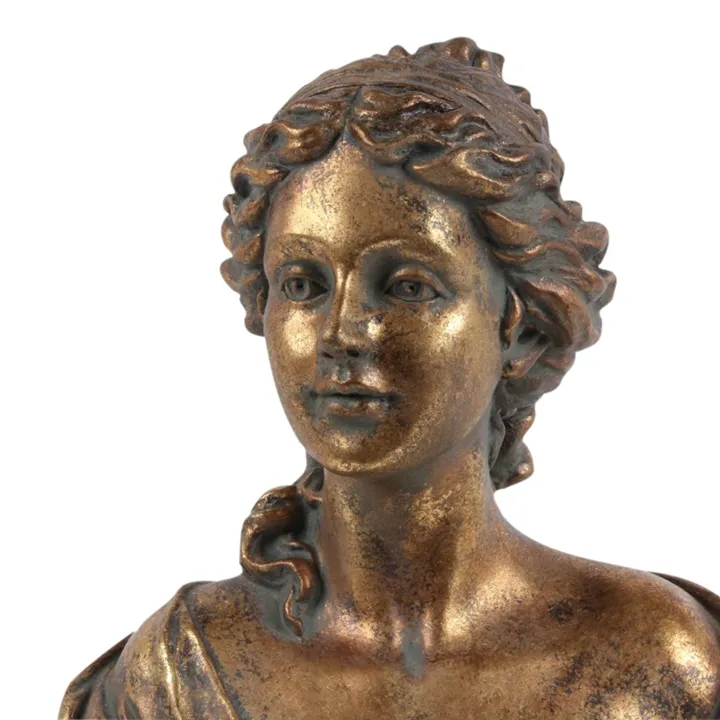 Colour: Gold | Material: Wood | Dimensions: 41x26x18 Beautiful gold women's bust made of polyresin with handmade details. Place it on a beautiful table in the hall or on the windowsill for a stately effect. The dimensions are 41x26x18cm.Alte servicii